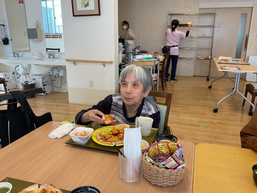 焼き上がったピザを頬ばりながら、「おいしい」と満足そうな表情も見られ、楽しい昼食時間となりました。