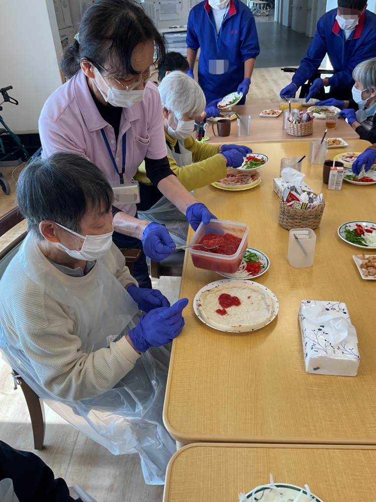 - 昼食レクリエーション(ピザ作り)をしました。