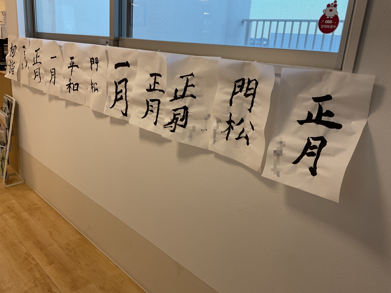 完成した作品はフロアに掲示し、現在も利用者様同士で作品を見ながら自然に会話が生まれています。