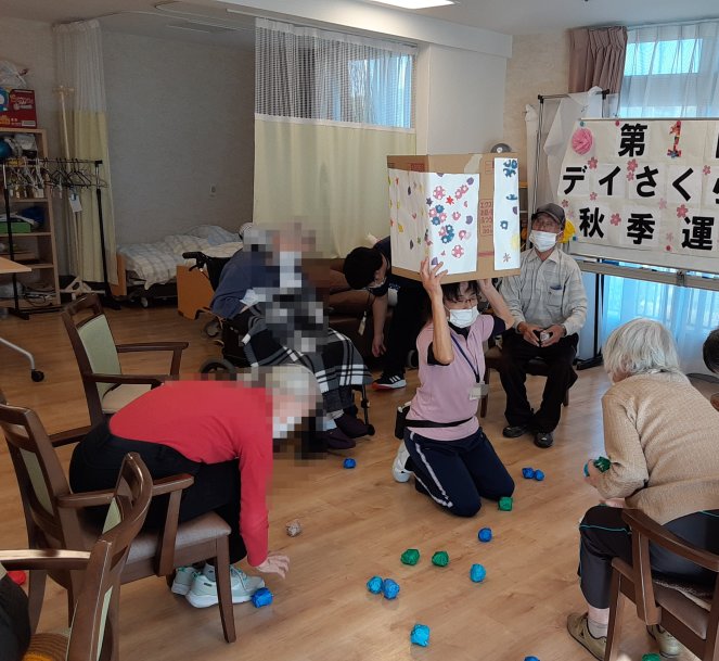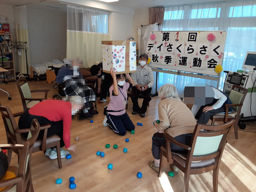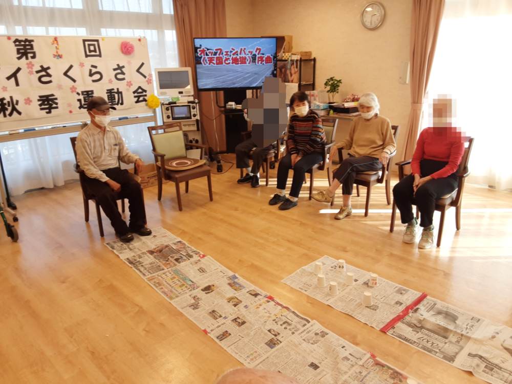 デイサービスセンターさくらさくでは、第1回となる秋季運動会を開催し、4種目団体戦で行いました。
